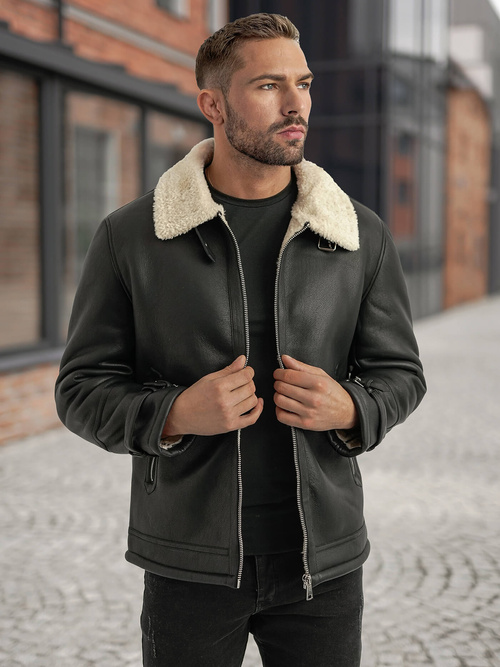 Moška usnjena jakna črna OZONEE JS/11Z8271