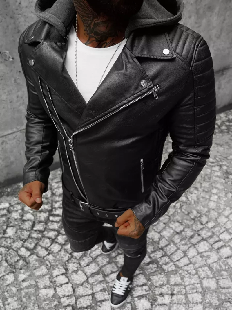 Moška usnjena jakna črna OZONEE JS/11Z8005