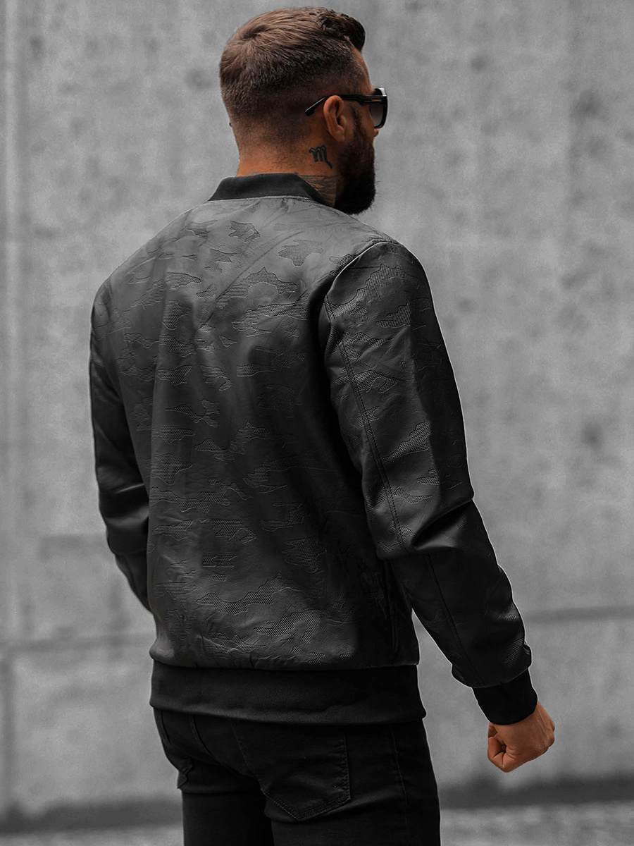 Moška usnjena bomber jakna črna OZONEE O/3A63