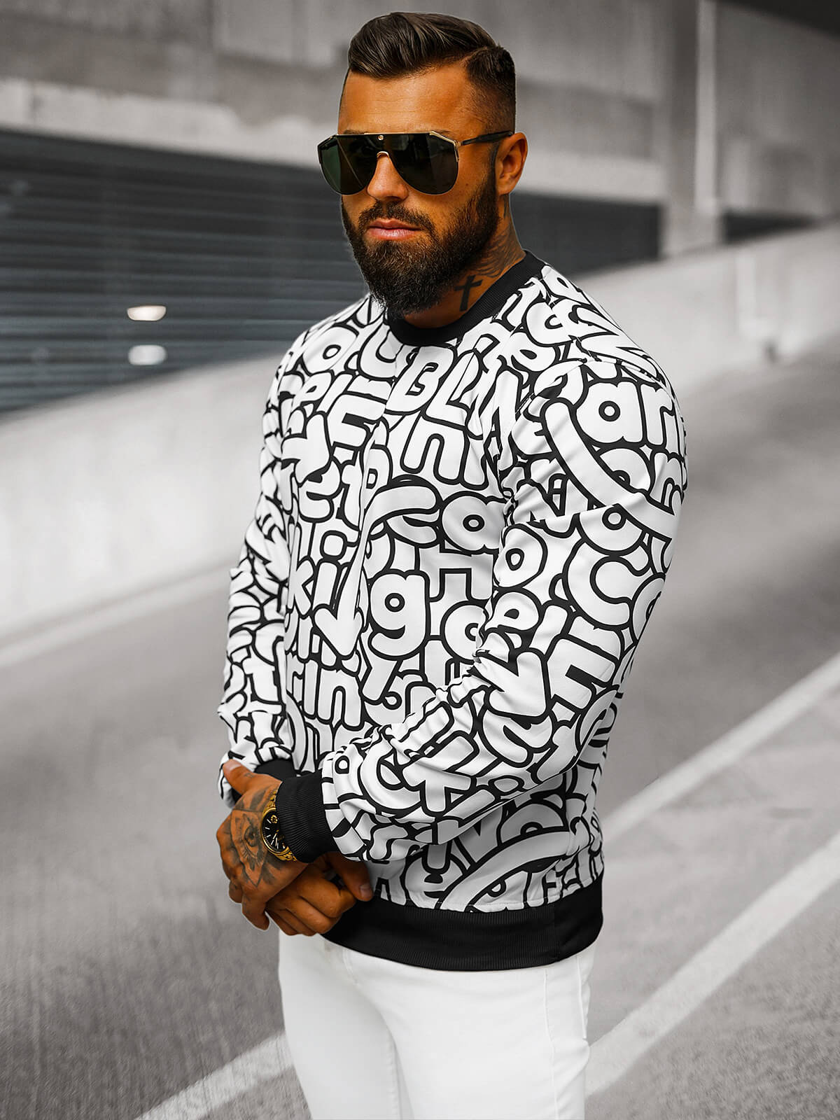 - Model (182 cm, 87 kg) nosi velikost XL.