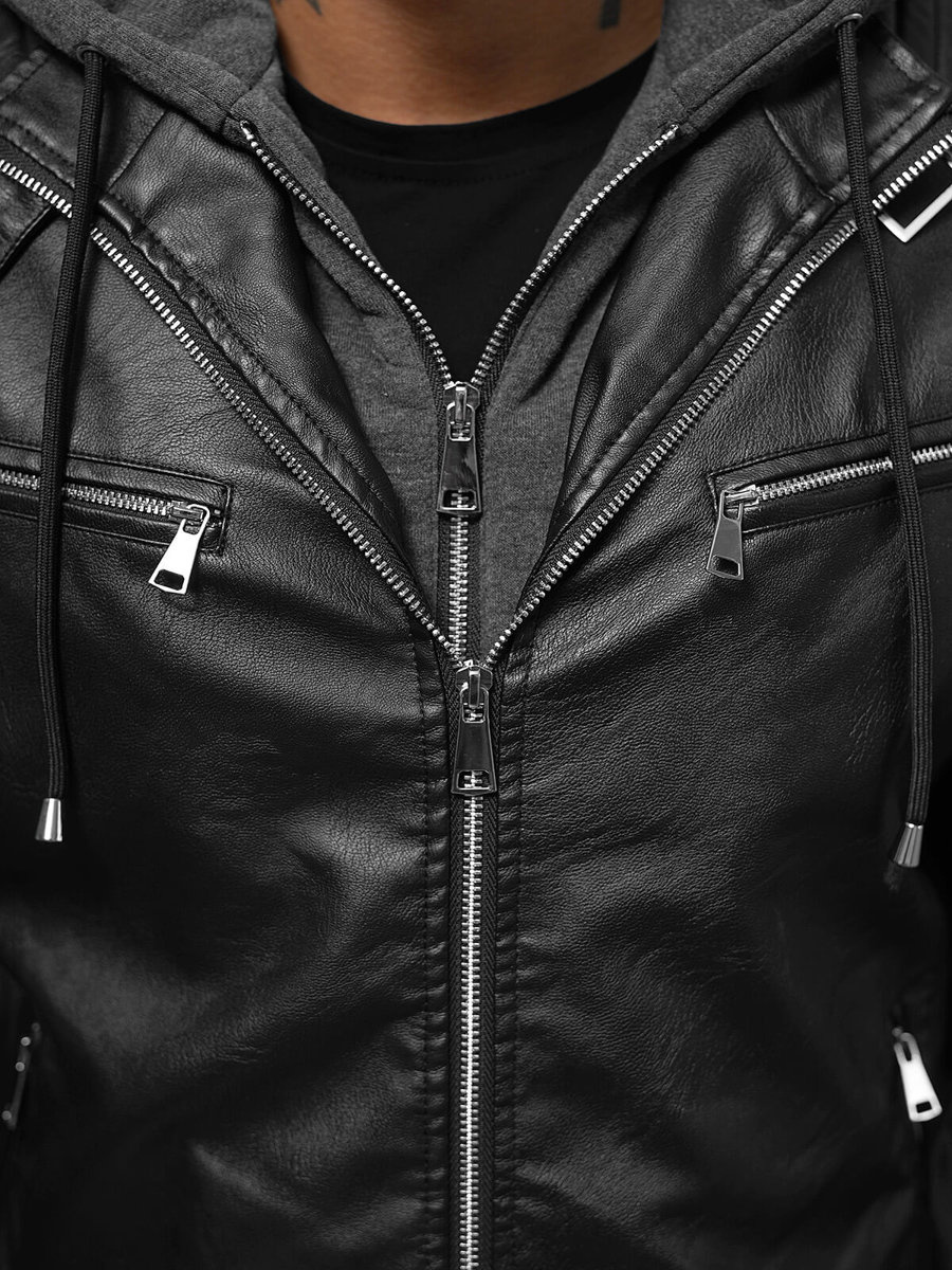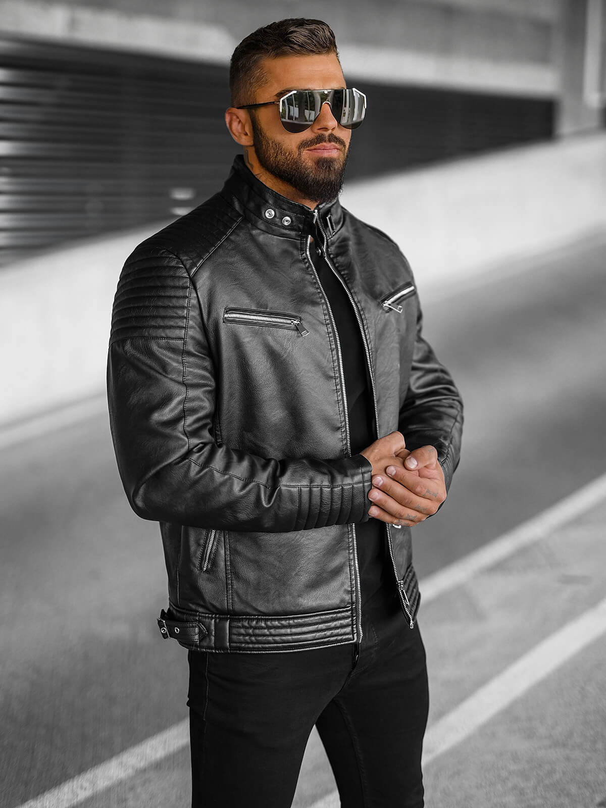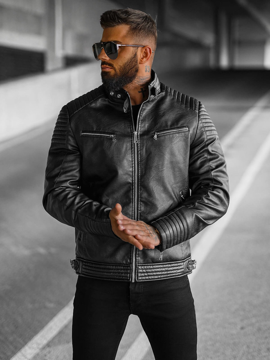 Moška usnjena jakna črna OZONEE JS/11Z8063