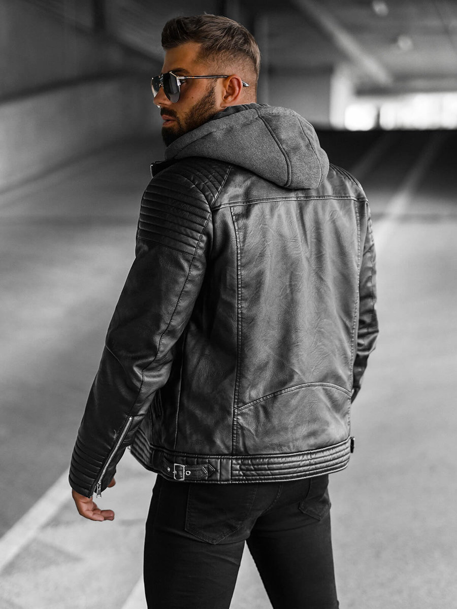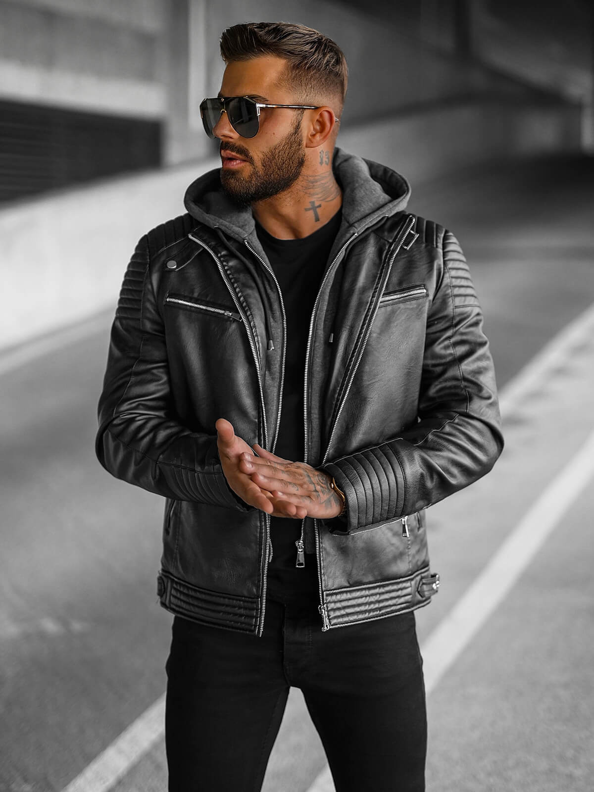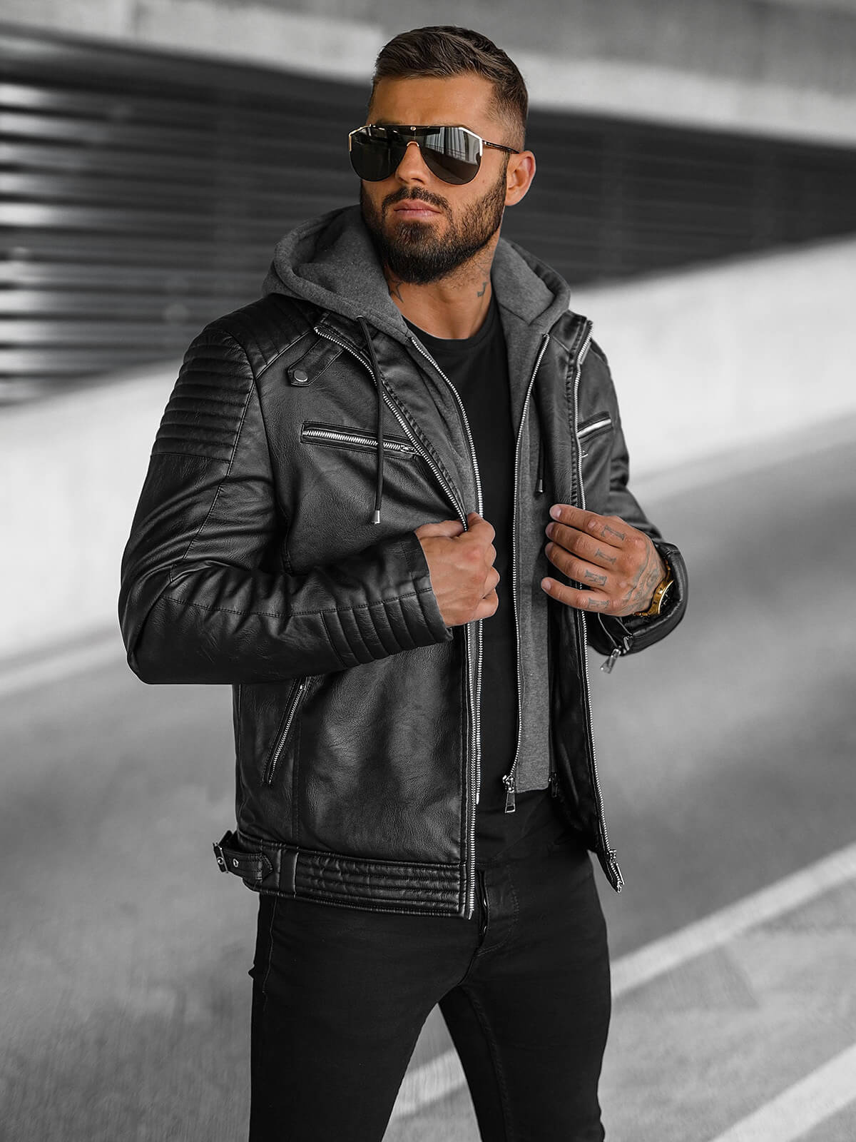 Moška usnjena jakna črna OZONEE JS/11Z8063