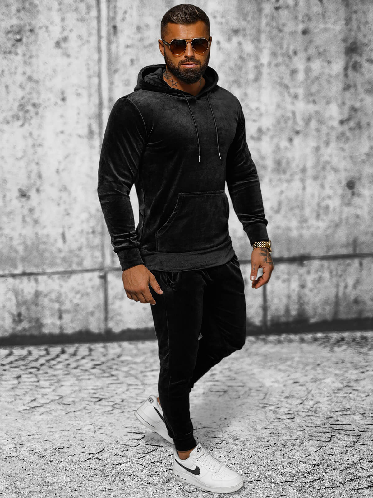 Moška črna velur trenirka OZONEE JS/8C1171/3 - udobje in slog v enem