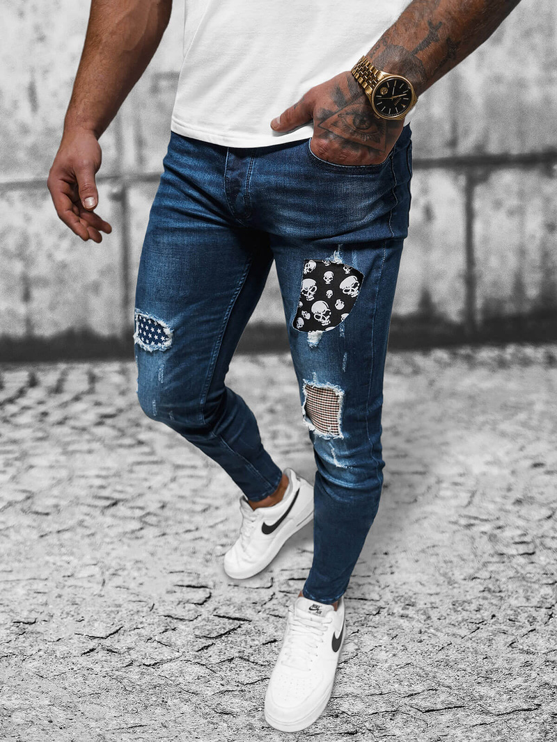 Moške kavbojke ozkega kroja blagovne znamke OZONEE so kombinacija udobja in modnega dizajna. Zaradi prikrojenega kroja odlično poudarijo moško silhueto, hkrati pa zagotavljajo svobodo gibanja. Značilno drgnjenje na nogah dodaja edinstven urbani značaj. Sprednji in zadnji žepi ne poudarjajo le elegantne zasnove, temveč so tudi izjemno praktični.