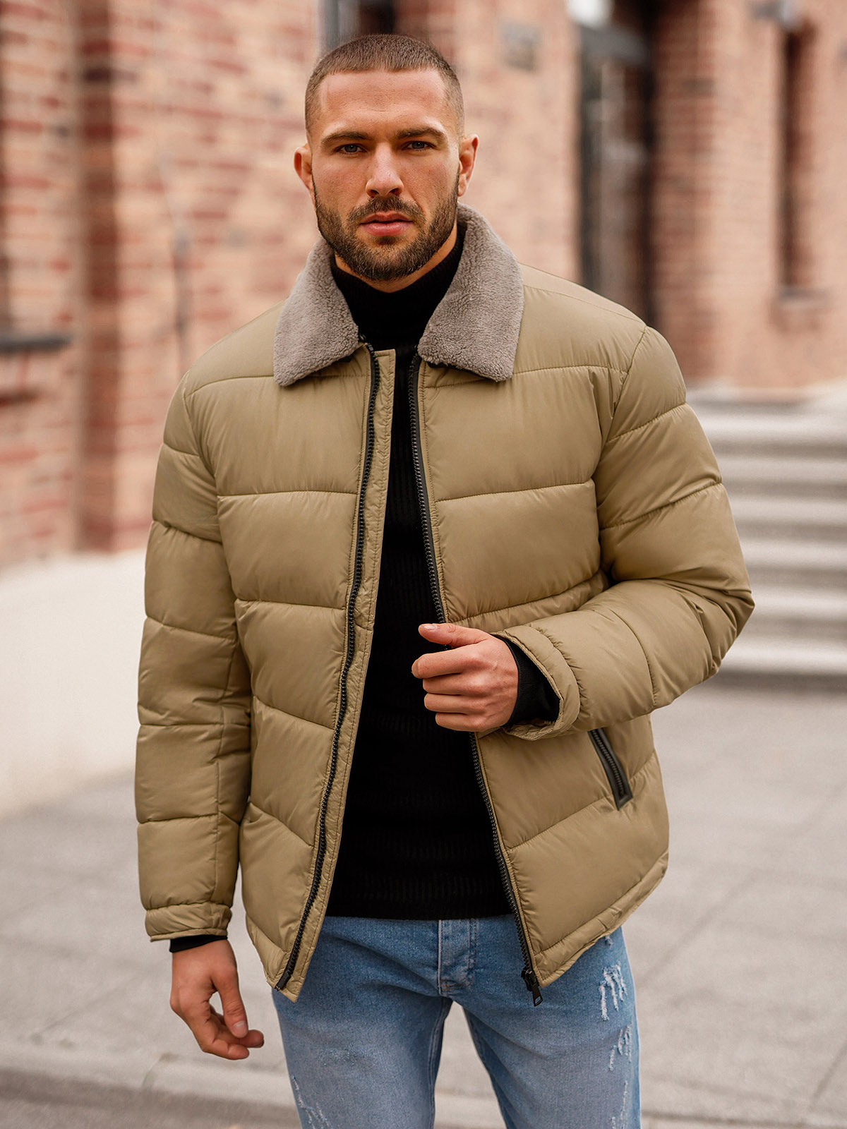 Moderna eleganca v moški izdaji - Moška prešita bež jakna OZONEE JS/31M5010