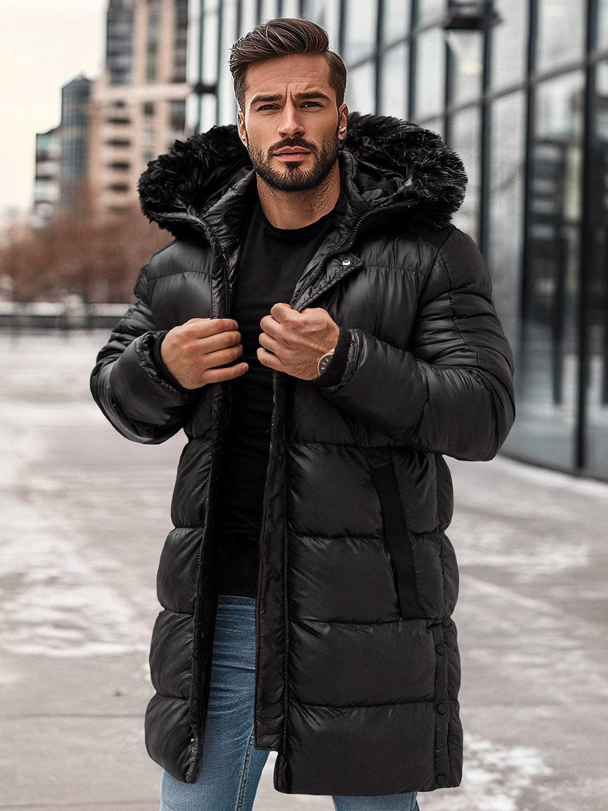 Stil in udobje v enem - Moška zimska jakna črna OZONEE O/M800Z