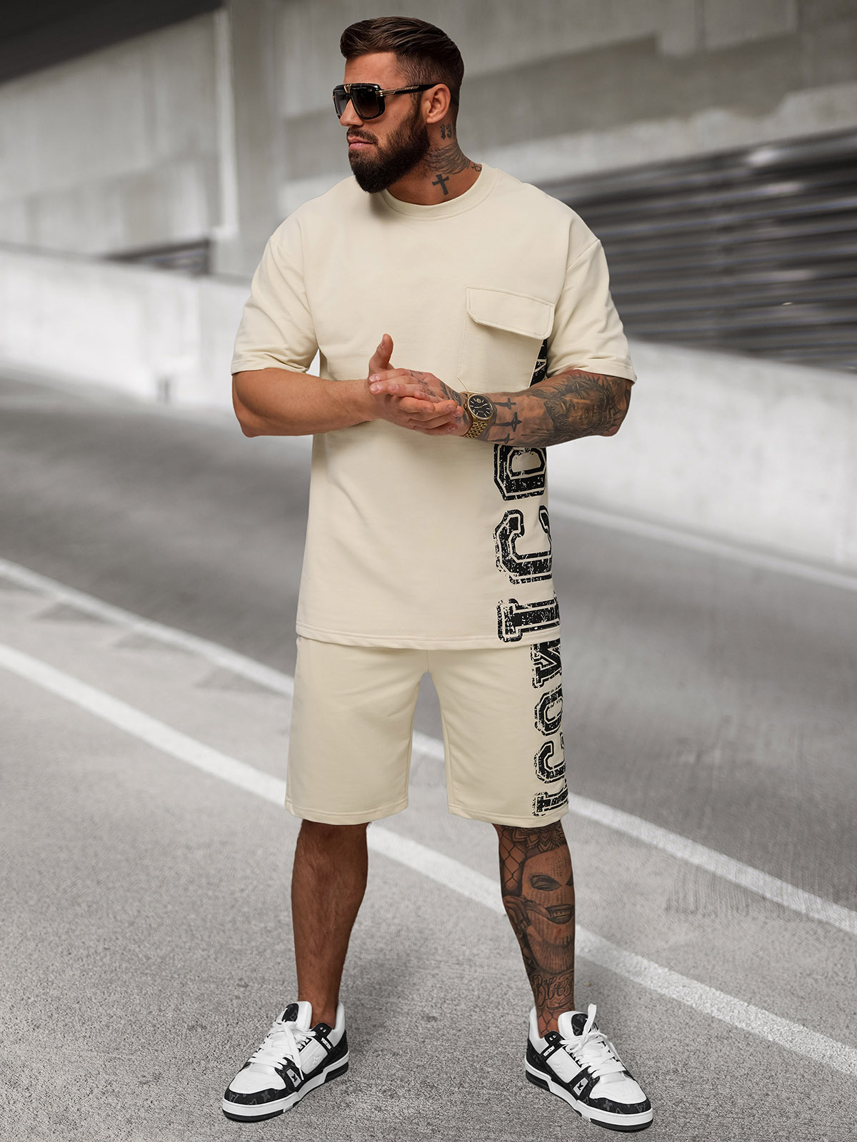 - Model (182 cm, 87 kg) nosi velikost L.