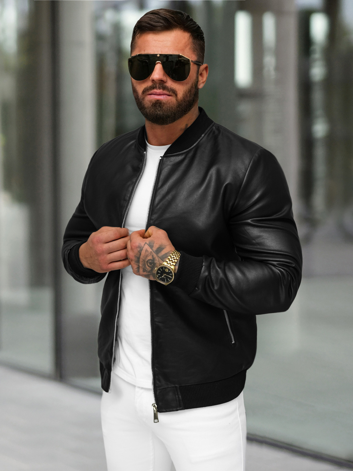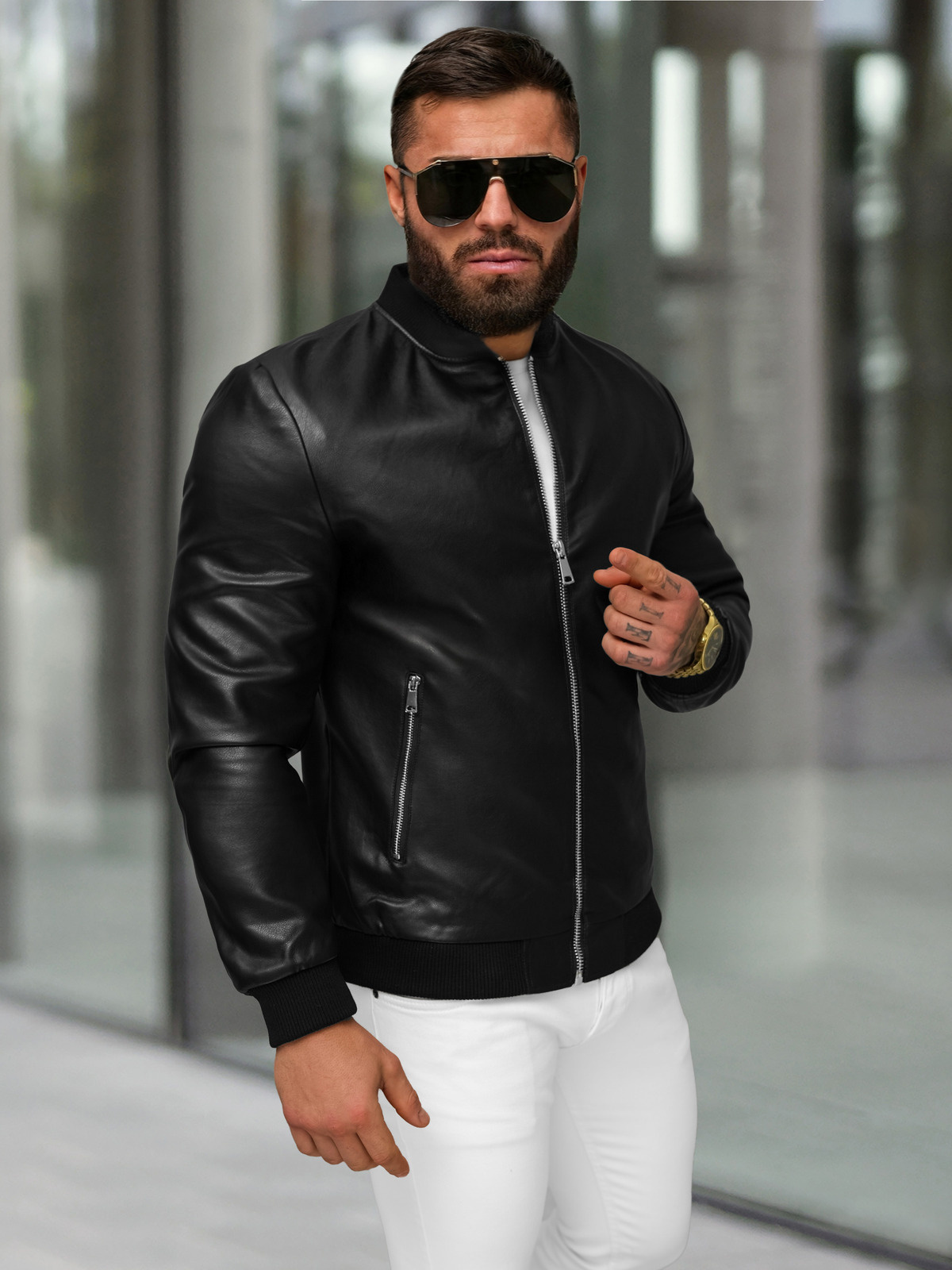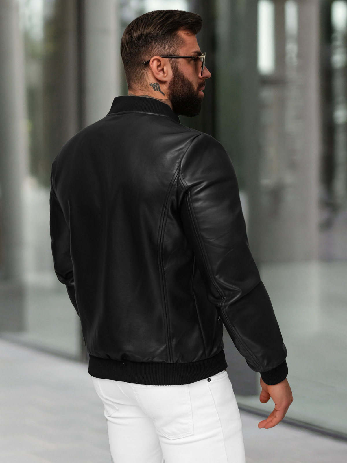 Moška usnjena jakna črna OZONEE JS/11Z8107