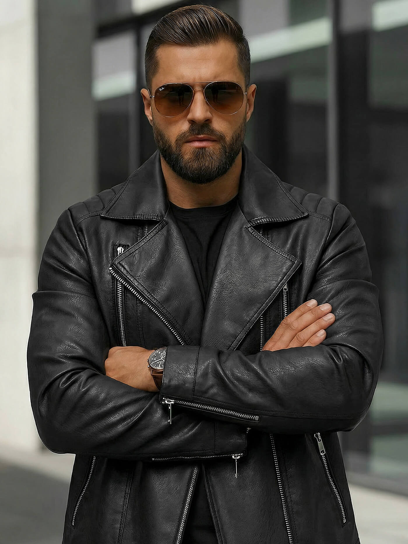 Model, ki je visok 182 cm in tehta 87 kg, ima velikost XL. Ta jakna je idealna za moške, ki cenijo modni videz in visoko kakovost izdelave. Zaradi univerzalne zasnove se odlično prilega različnim tipom silhuet in stilov.
