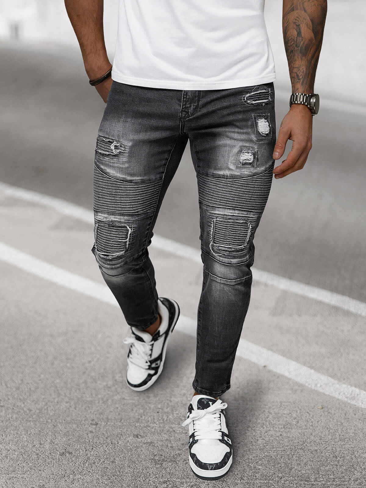 Moške kavbojke črne OZONEE NB/MP0142N