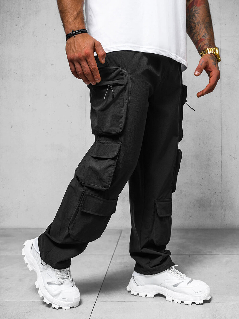 Moške tovorne hlače s širokimi nogavicami črne barve OZONEE O/PS5528 - Modna izbira za sodobnega moškega