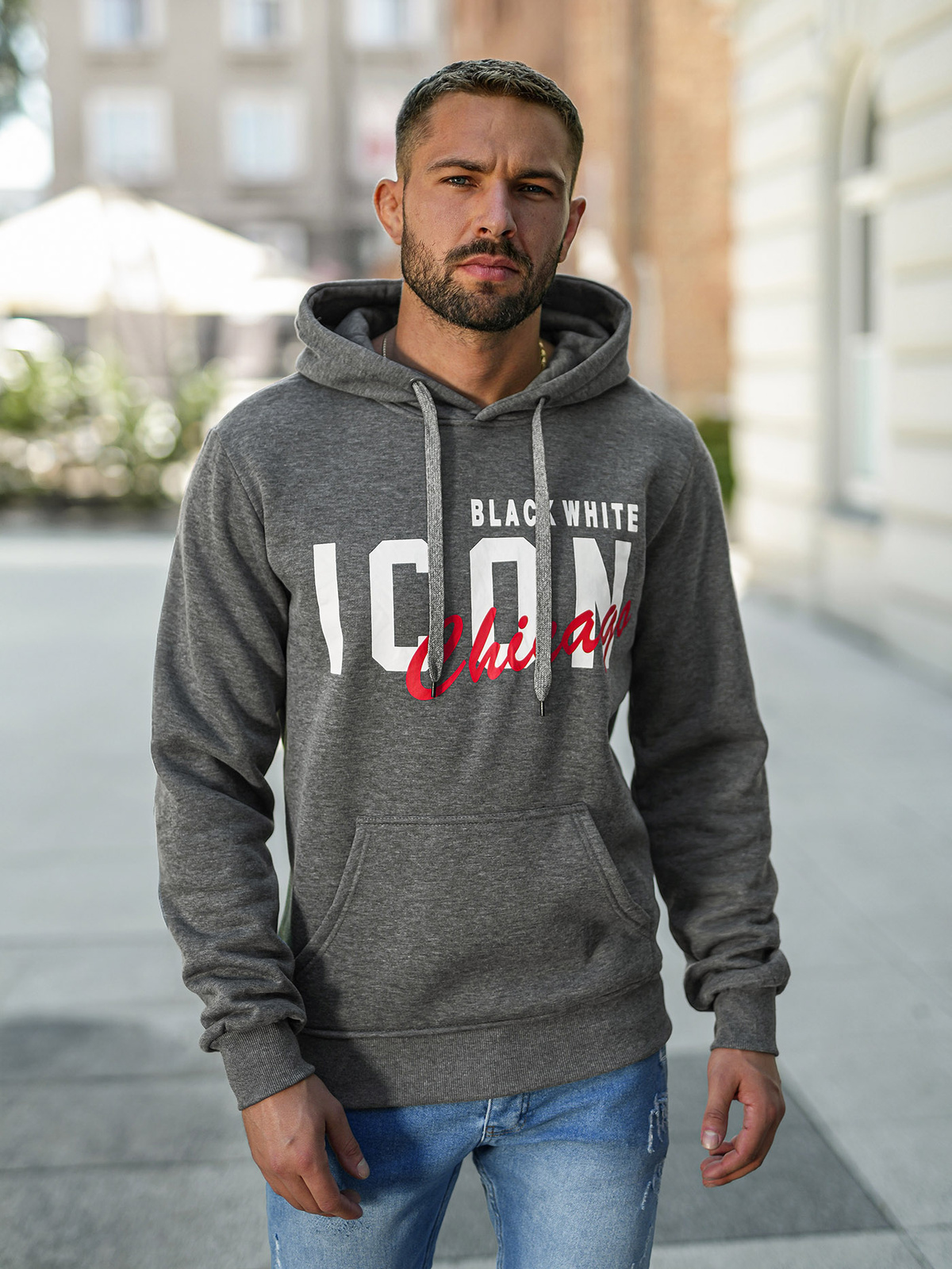 Moška jopa s kapuco grafitna OZONEE JS/8B1736/5