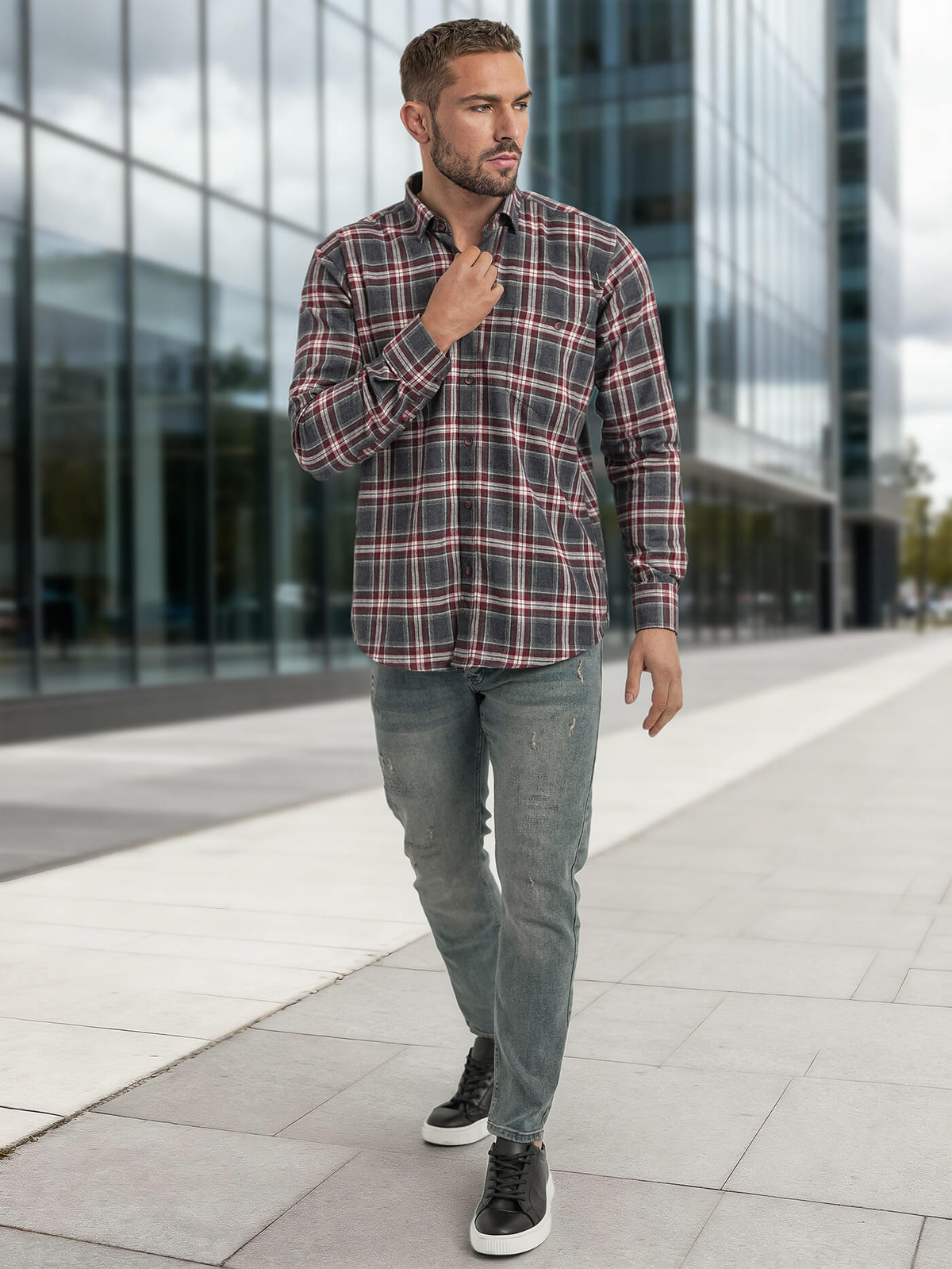 - Moška srajca za vsak dan s karirastim vzorcem