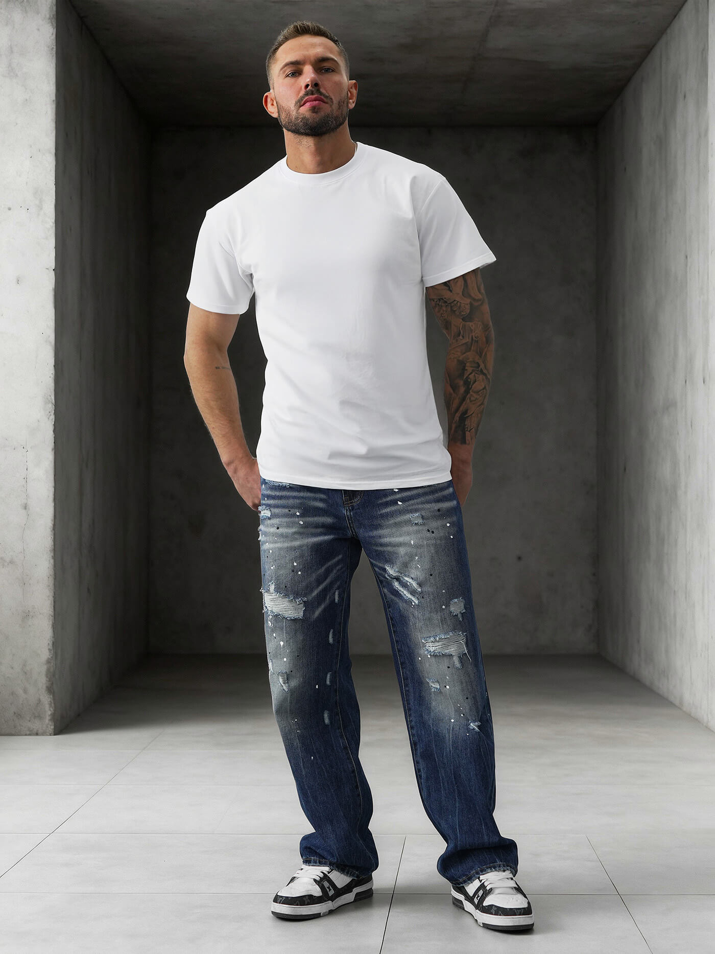 | Velikost | Szerokość w pasie A | Szerokość nogawki od kroku B | Długość całkowita C | Długość nogawki wewnętrzna D | Szerokość na dole E |