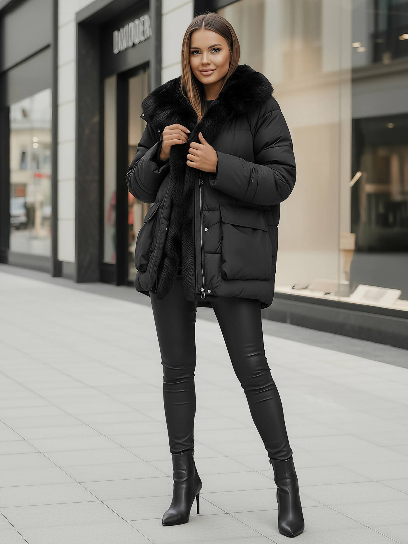 - Ženska zimska jakna s toplo podlogo iz krzna