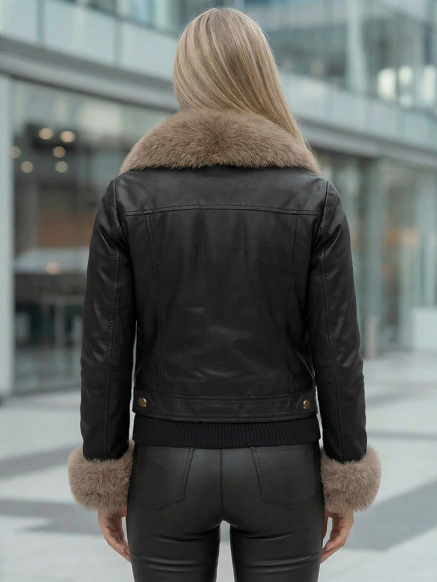 - Ženska jakna iz materiala, ki posnema usnje