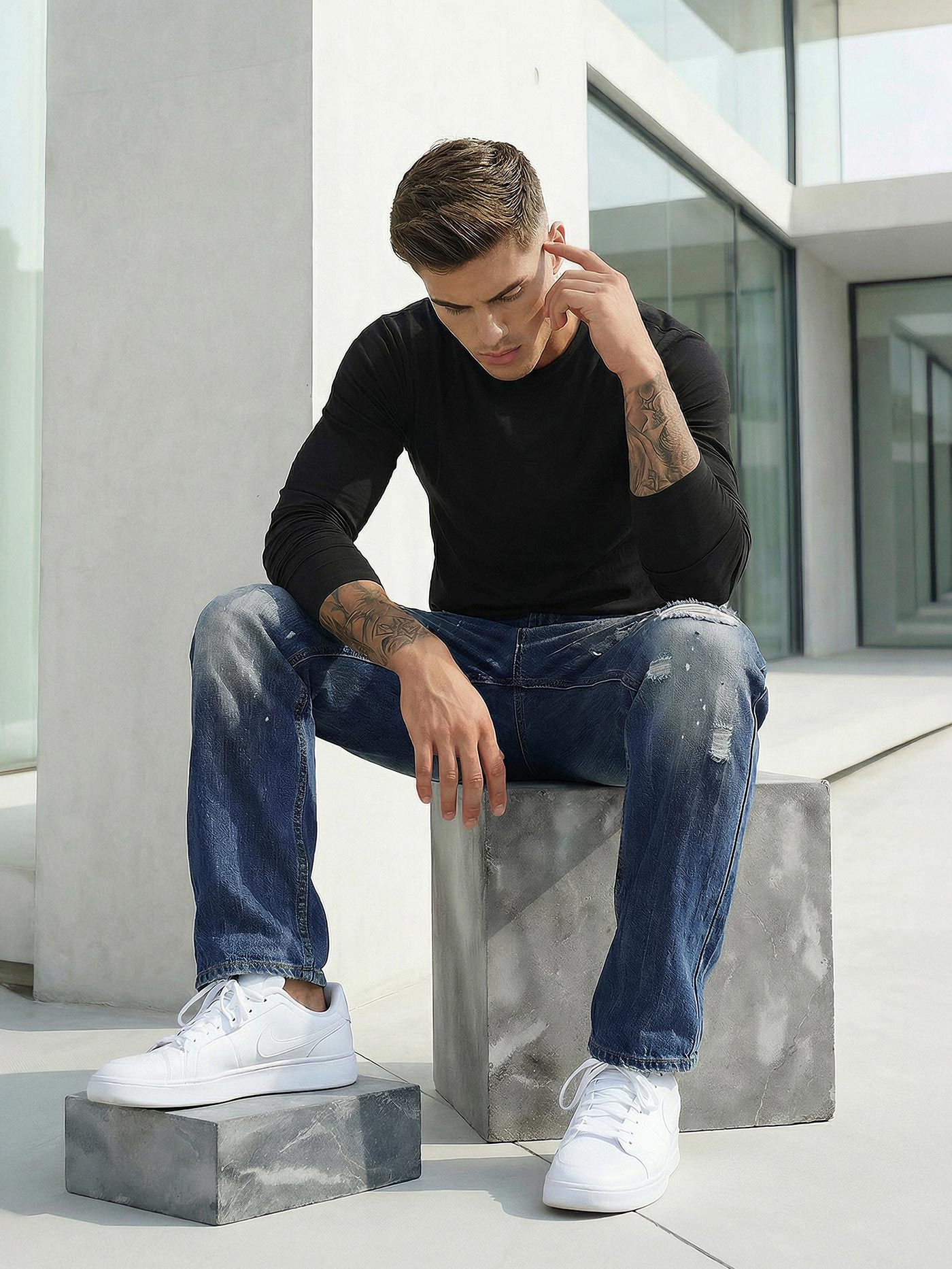 - Moške kavbojke s širokimi hlačnicami