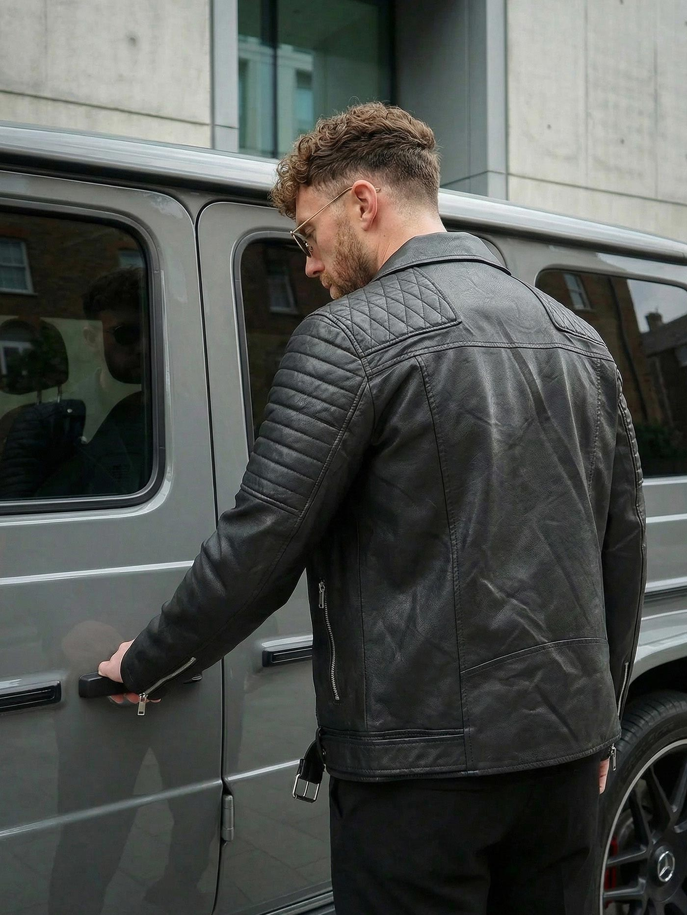 Moška jakna ramoneska iz najnovejše kolekcije OZONEE je odlična izbira za moške, ki cenijo slog in udobje. Ta črna jakna je izdelana iz eko usnja in se zapenja z zadrgo ter je izjemno moden in vsestranski kos oblačila.