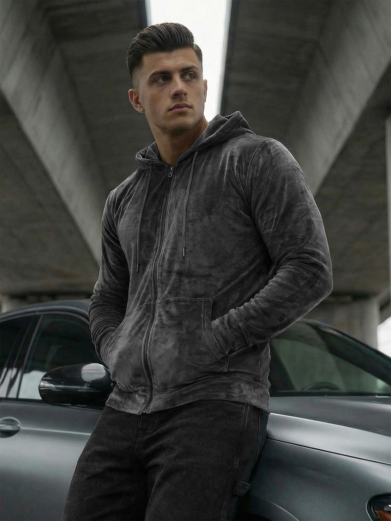 Moška grafitna velur jopa s kapuco OZONEE JS/8B1168/6Z - popolna za vsako priložnost