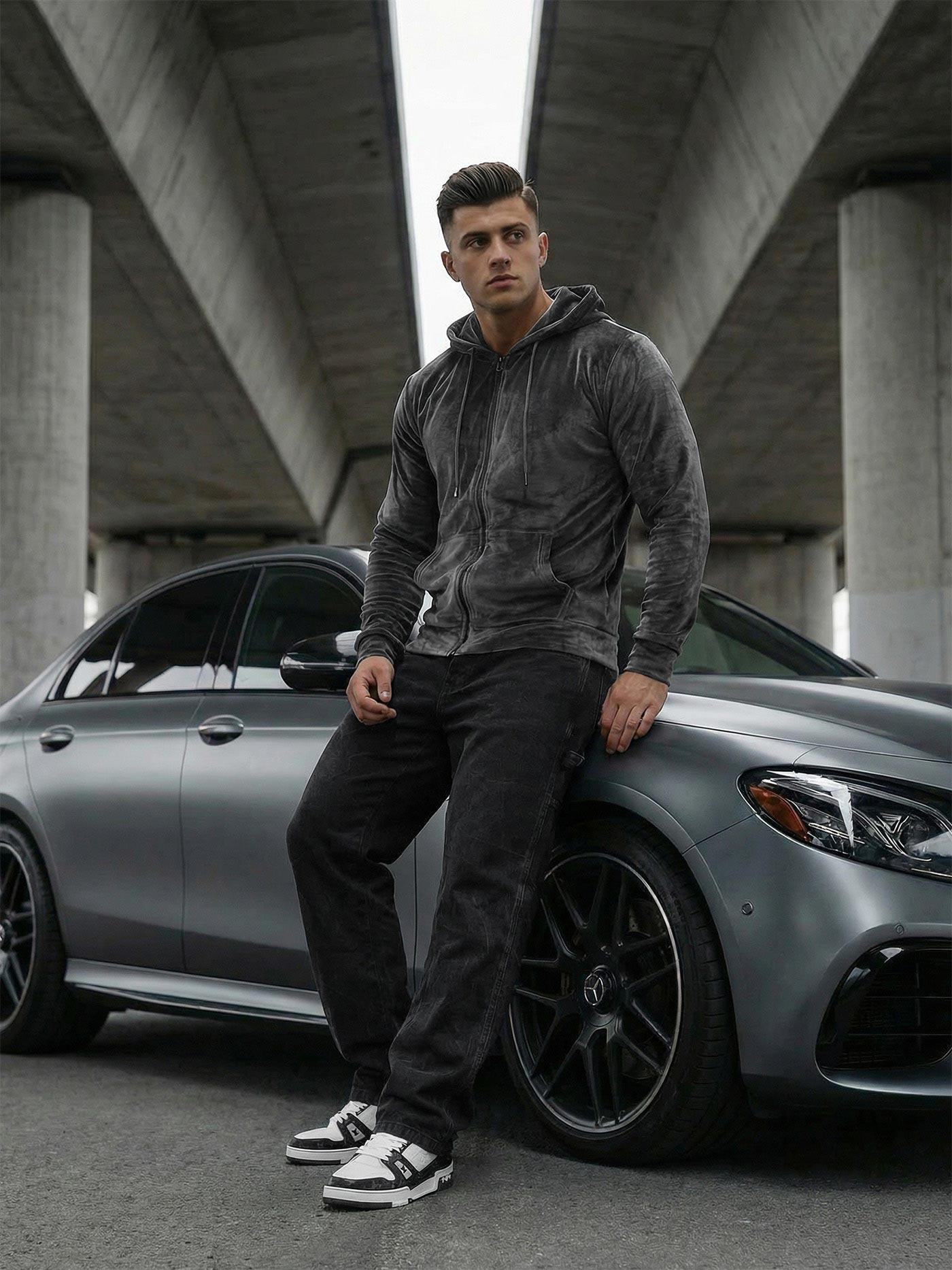 Moška grafitna velur kapuca OZONEE JS/8B1168/6Z - slog in udobje v enem